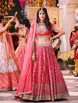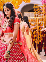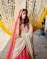 Red lehenga with sequin and mirror work paired with dupatta (only one)
