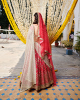 Red Lehenga Set With Net Dupatta