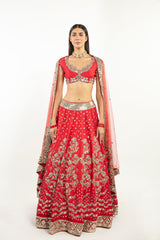 Fabric body: Net- Dupatta, Rawsilk-Blouse and Skirt