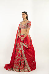 Begum Red Embellished Lehenga Set