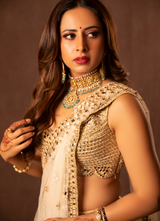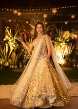 GOLDEN EMBELLISHED LEHENGA SET as seen on Sargun Mehta