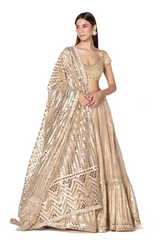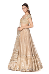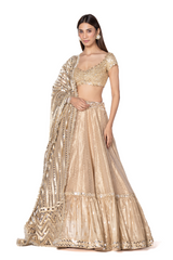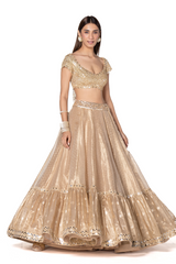Fabric Description:- skirt - golden tissue, blouse - gota