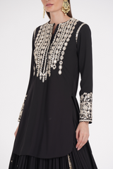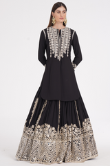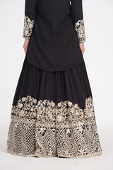 Fabric Description:- Shirt- special black georgette , skirt- black georgette