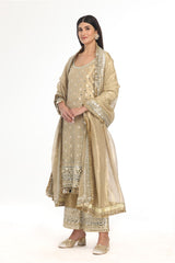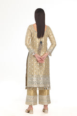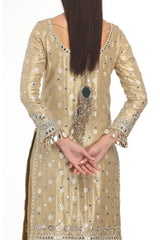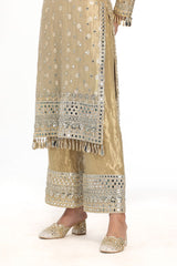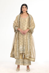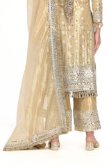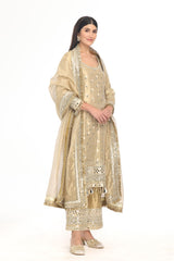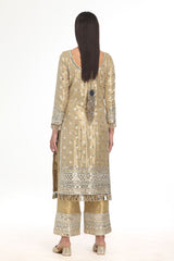 GOLDEN KURTA & PANTS SET WITH TISUUE DUPATTA