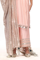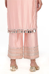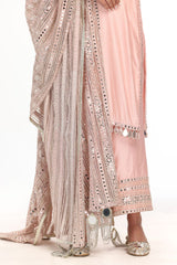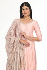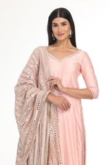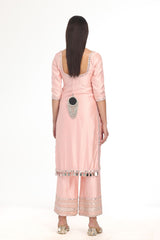 PINK KURTA & PANT SET WITH HEAVY MIRROR WORK DUPATTA
