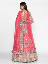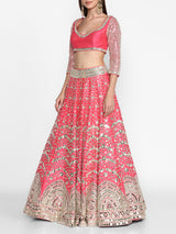 Hot Pink lehenga set embroidered with mirror and zari work; paired with a tonal organza dupatta