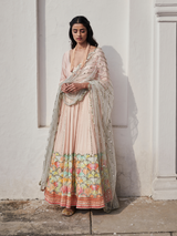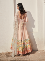 Digital printed anarkali and mirror work on done in the scallops dupatta