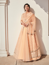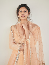 Embellished Jacket and lehenga set in raw silk with mirror and sequin work and dupatta