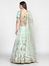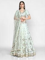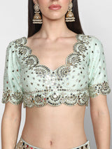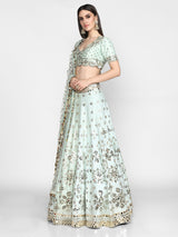 Powder Blue Embellished Raw Silk Lehenga Set