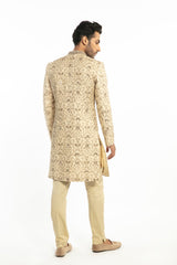 Fabric Description: Sherwani - Monga Chandheri, Kurta- Chanderi, Pants- Raw Silk