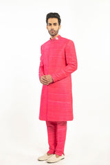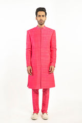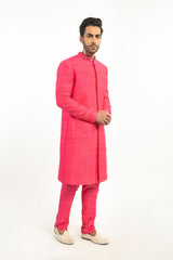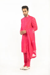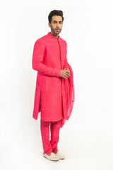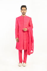 Fabric Description: Sherwani - Raw SIlk, Kurta - Chandheri , Pants- Raw Silk, Stole- Organza