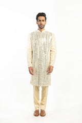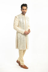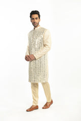 Fabric Description: Pants- Raw Silk, Kurta - Chandheri , Sherwani Raw Silk