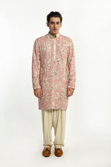 Ivory With Pink Embellished Kurta