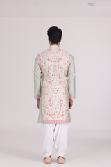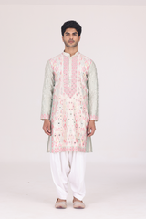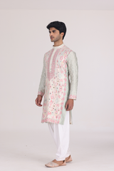PEACH PEARL IVORY AQUA PRINTED KURTA