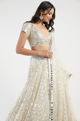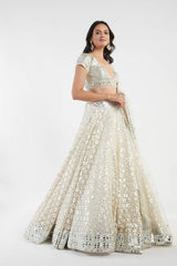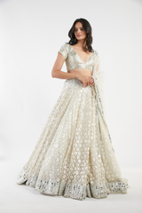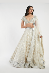 skirt and duptta - net , blouse - Raw silk, Embroidery -mirror, sequin and resham