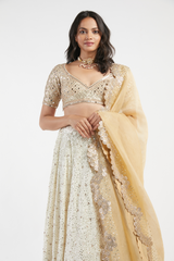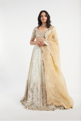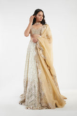 rawsilk blouse, chandheri- skirt, organza-dupatta, embroider-gota patti, sequin, zardozi and mirror work