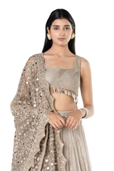 Silver tissue lehenga set