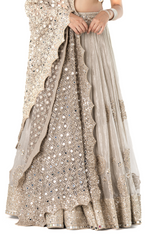 Fabric Description:- skirt - silver tissue, blouse - silver tissue, dupatta - net