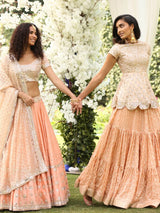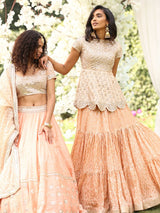 Peach raw silk peplum embellished tunic with sequin embroidered skirt