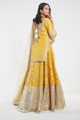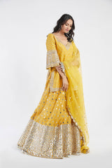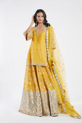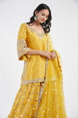 kurta&skirt-raw silk, dupatta-net , embroidery- gota patti &mirror