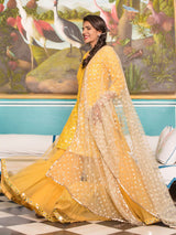 Yellow chanderi sharara set with net dupatta