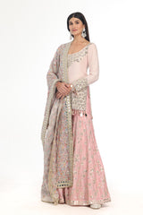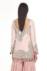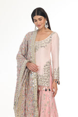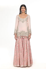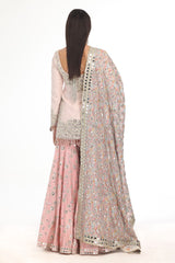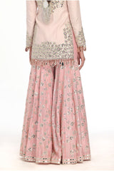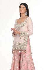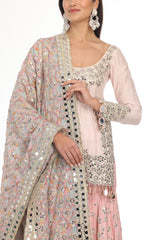 PINK KURTA & SHARARA SET WITH HEAVY PRINTED MIRROR WORK DUPATTA