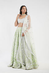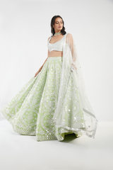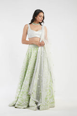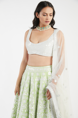 Ivory and Green Lehenga Set
