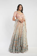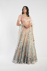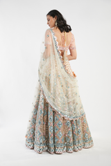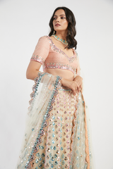 Fabric: skirt and dupatta- net , blouse raw silk , embroidery - mirror and resham