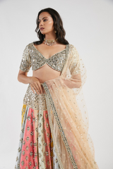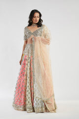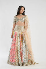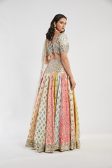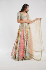 Fabric: skirt- raw silk, blouse raw silk, dupatta net , embroidery sequin mirror and zari