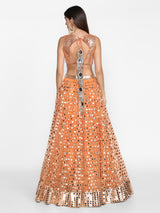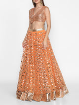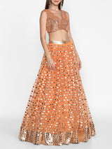 Orange embellished lehenga set adorned with mirror work