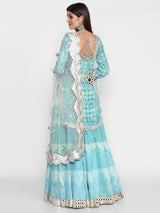 Turquoise sharara set adorned with mirror and gota work