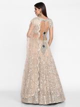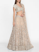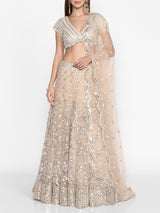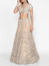 Gold embelished lehenga set embroidered with mirror and zari work; paired with a tonal organza dupatta