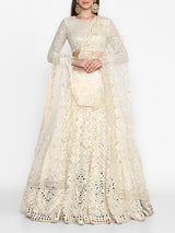 Ivory embellished lehenga set embroidered with mirror and resham work; paired with a tonal net dupatta