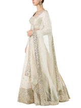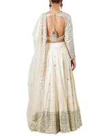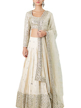 Ivory lehenga set paired with a dupatta; adorned with sequins, zari, resham and mirror work