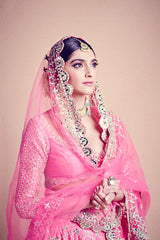 Jaipuri Pink Mirror Work-Embellished Lehenga with Gota Detailing as seen on Sonam Kapoor