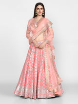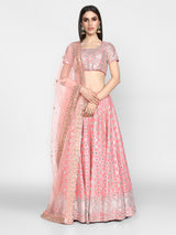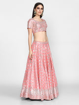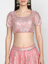 Pink Embellished Lehenga with Mirror-Work & Gota